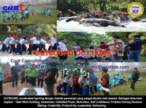 OUTBOUND, accelerated learning dengan metode permainan yang sangat disukai oleh peserta. Berbagai tema kami siapkan : Team Work Building, Awareness, Unlimited Power, Motivation, Self Confidence, Problem Solving Decision Making, Creativitity,...