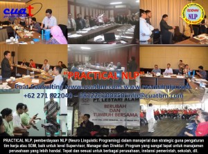 PRACTICAL NLP, pemberdayaan NLP (Neuro Linguistic Programing) dalam manajerial dan strategic guna pengaturan tim kerja atau SDM, baik untuk level Supervisor, Manager dan Direktur. Program yang sangat tepat untuk manajemen...